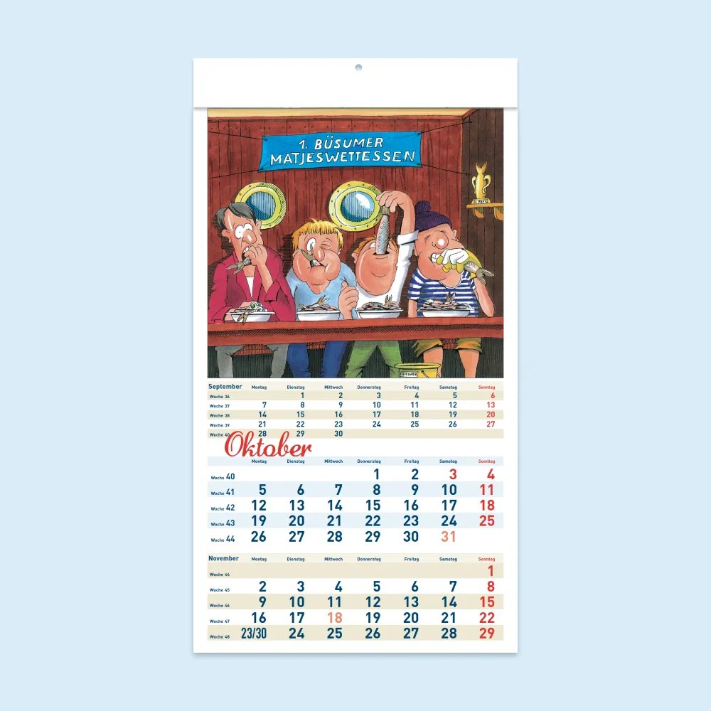 Mit dem Rollmops – dem Kultkalender aus dem hohen Norden. Mit viel Witz und Charme hat jedes Kalenderbild eine kleine Überraschung parat. Seit nunmehr vielen Jahren ist der Rollmops-Kalender unser Klassiker, der sich an vielen Auflagen erfreut
